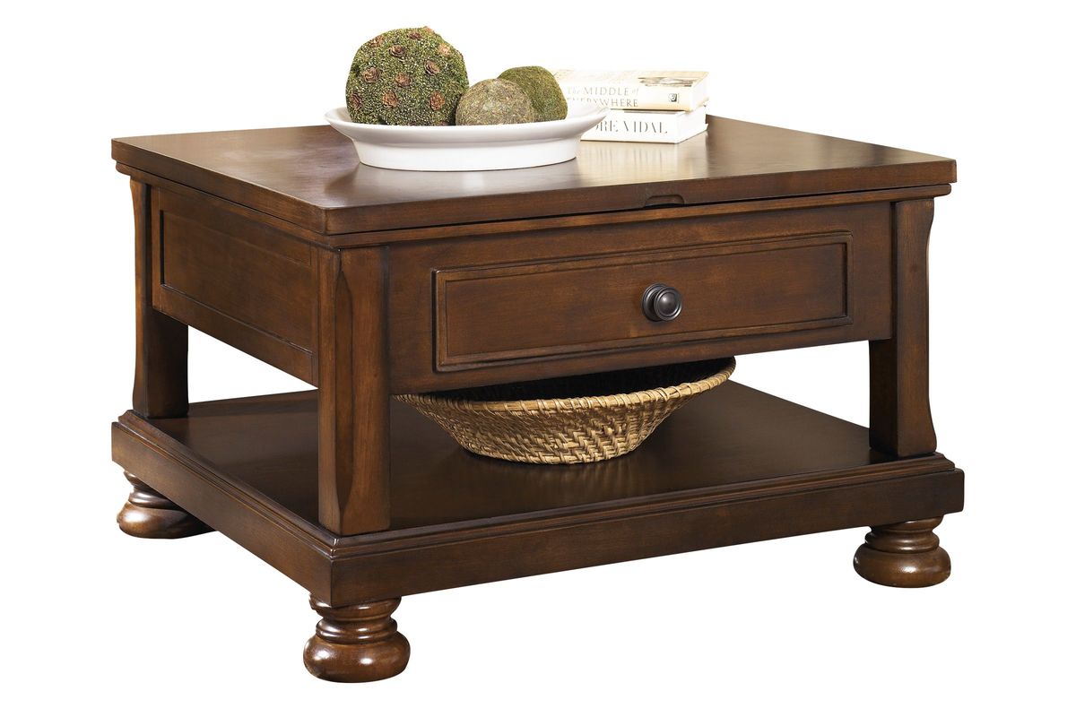 As we have the ability to list over one million items on our website (our selection changes all of the time), it is not feasible for a company our size to record and playback the descriptions on every item on our. A burnished finish and classic bun feet exude a sense of relaxed elegance. Read honest and unbiased product reviews from our users. (united states) and you will enter an ashley furniture homestore website that is operated by an independently owned and operated ashley furniture homestore retailer. Its farmhouse style garners attention with distressed rustic finish and black metal accents. Those drawn to the warm, homey feel of traditional interiors love how the porter lift top coffee table rises to the occasion. Porter coffee table with 1 end table. You'll love the extra room in the cubby and lower cabinet for stashing items. Those drawn to the warm, homey feel of traditional interiors love how the porter lift top coffee table rises to the occasion. Five workable drawers make it packed with storage possibilities. Usually ships within 1 to 2 months. Only 3 left in stock (more on the way). Five workable drawers make it packed with storage possibilities.